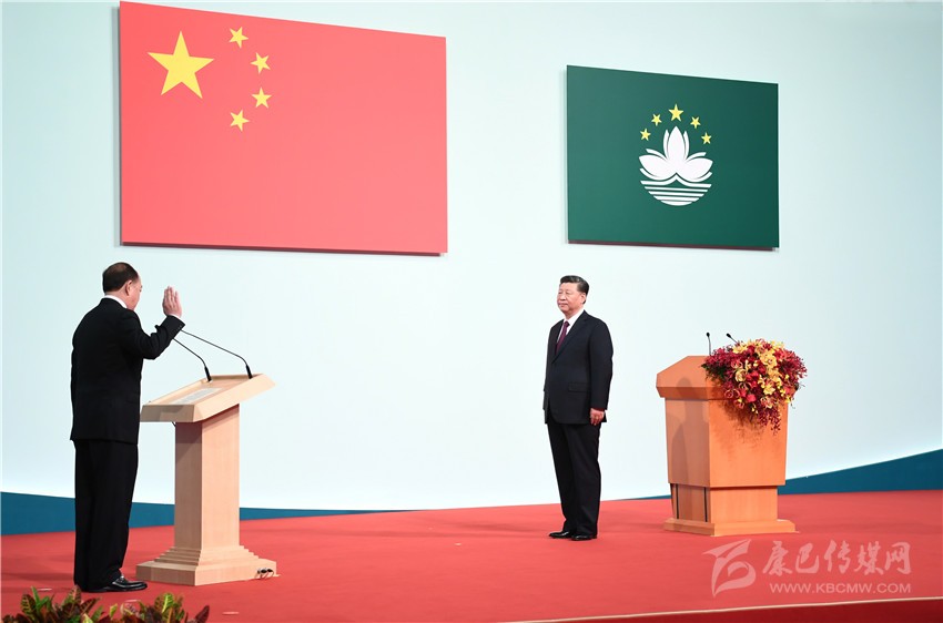 慶祝澳門(mén)回歸祖國(guó)20周年大會(huì)暨澳門(mén)特別行政區(qū)第五屆政府就職典禮20日上午在澳門(mén)東亞運(yùn)動(dòng)會(huì)體育館隆重舉行。中共中央總書(shū)記、國(guó)家主席、中央軍委主席習(xí)近平出席并發(fā)表重要講話。他指出,澳門(mén)回歸祖國(guó)20年來(lái),澳門(mén)特別行政區(qū)政府和社會(huì)各界人士同心協(xié)力,開(kāi)創(chuàng)了澳門(mén)歷史上最好的發(fā)展局面,譜寫(xiě)了具有澳門(mén)特色的“一國(guó)兩制”成功實(shí)踐的華彩篇章。他希望澳門(mén)特別行政區(qū)新一屆政府和社會(huì)各界人士站高望遠(yuǎn)、居安思危,守正創(chuàng)新、務(wù)實(shí)有為,在已有成就的基礎(chǔ)上推動(dòng)澳門(mén)特別行政區(qū)各項(xiàng)建設(shè)事業(yè)躍上新臺(tái)階。