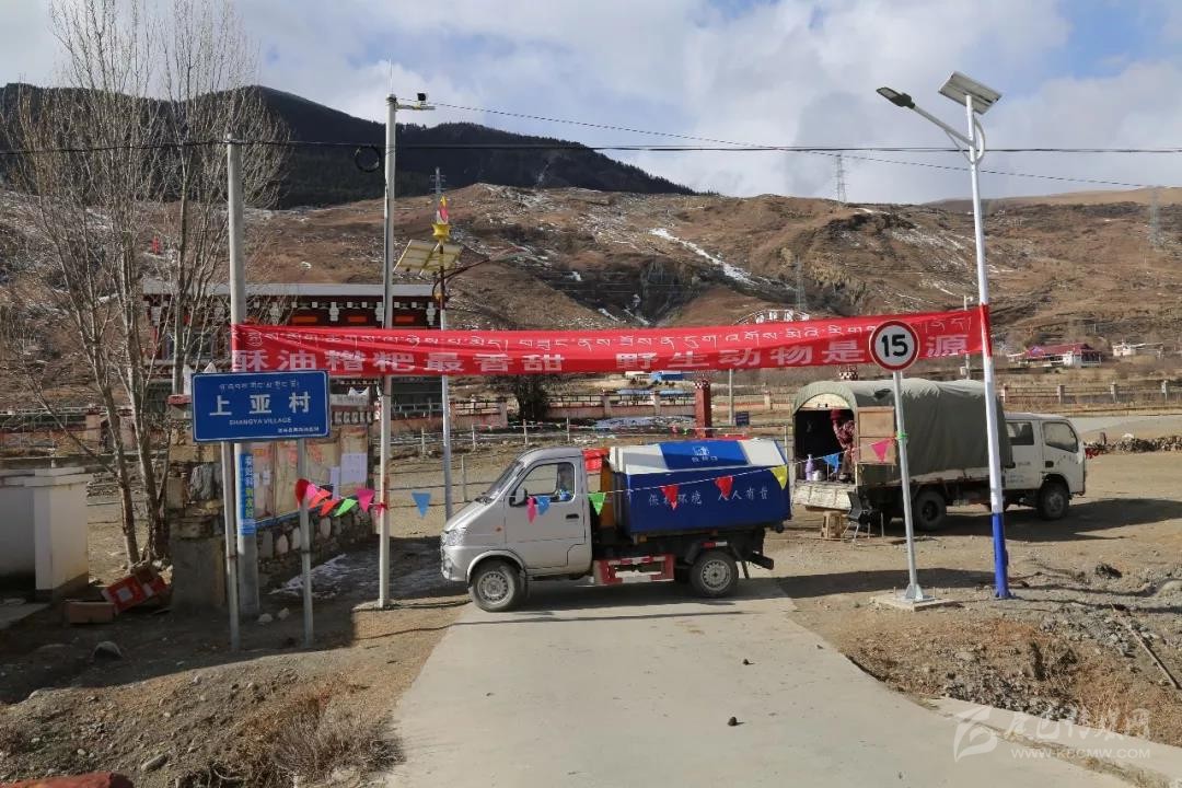 “不準(zhǔn)進(jìn)哈,離我遠(yuǎn)點。”2月13日,記者來到道孚縣格西鄉(xiāng)上亞村口,一個垃圾車橫著堵住進(jìn)村道路,一幅“酥油糌粑最香甜,野生動物是病源”的橫幅醒目地牽一根電桿和路燈柱上,一個中年藏族婦女遠(yuǎn)遠(yuǎn)地打著招呼。