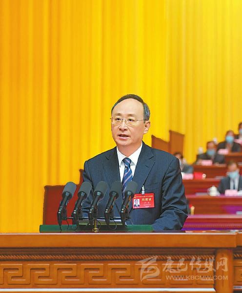 尹力代表省人民政府作工作報告。