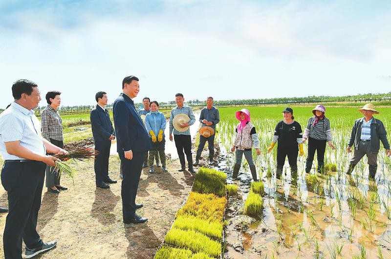 6月9日下午,習近平在銀川市賀蘭縣稻漁空間鄉(xiāng)村生態(tài)觀光園,同正在勞作的村民親切交談。 新華社 發(fā)