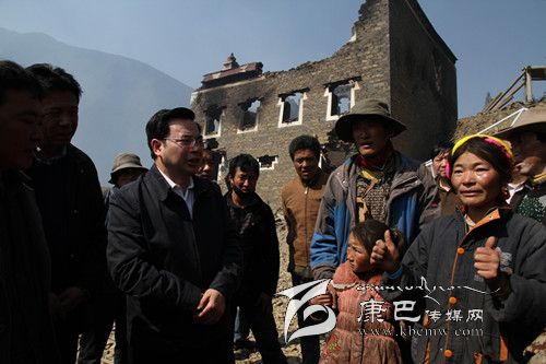 22日早晨8時,胡昌升帶著對受災(zāi)群眾的惦念、對災(zāi)情的關(guān)注、對撲火人員的慰問,驅(qū)車前往康定縣沙德鄉(xiāng)火災(zāi)現(xiàn)場慰問受災(zāi)群眾、查看火災(zāi)災(zāi)情,指揮撲火工作。此前的21日,上赤村洛讓鄧珠的房屋在此次森林火災(zāi)中被燒毀。一到上赤村,胡昌升便踩著帶著余溫的瓦礫來到受災(zāi)農(nóng)戶洛讓鄧珠家,為洛讓鄧珠送上慰問金及毛毯、被子等物資,看望洛讓鄧珠的家人,詳細詢問家庭基本情況和災(zāi)后安置情況。胡昌升說,大火無情人有情,房子沒了可以再建,東西燒毀了可以再買,人沒事就好,困難是暫時的,黨委、政府一定會照顧好你們的生活,和你們一起克服眼前困難,幫助你們盡快建設(shè)更加美麗、更加安全的新家園。他要求縣鄉(xiāng)黨委、政府要幫助洛讓鄧珠切實解決吃飯、穿衣、帳篷及房屋重建等實際困難,把黨委政府的溫暖送到他們心上。胡昌升還鼓勵洛讓鄧珠要振作起來,在黨委政府的幫助下重建家園,不要因受災(zāi)耽誤孩子上學(xué)。希望鄉(xiāng)親們積極伸出援手,幫助洛讓鄧珠家解決生活困難、開展家園重建。