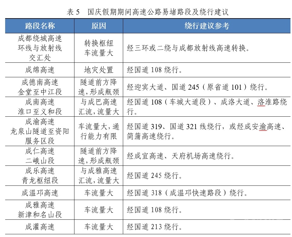 國慶大假即將來臨,去哪里?堵不堵?是公眾關(guān)心的熱點(diǎn)。9月28日,四川省交通運(yùn)輸綜合行政執(zhí)法總隊(duì)(廳高管局)、四川省公安廳交通警察總隊(duì)聯(lián)合發(fā)布假期高速公路研判,提醒廣大車主朋友們出行前合理安排出行時(shí)間和出行路線,盡量避開高峰時(shí)段和擁堵路段。