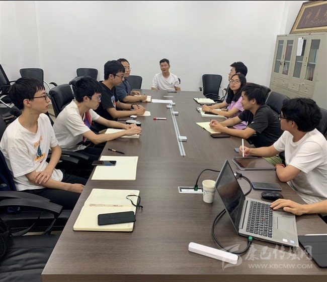 指導(dǎo)老師王忠海和團隊成員在討論