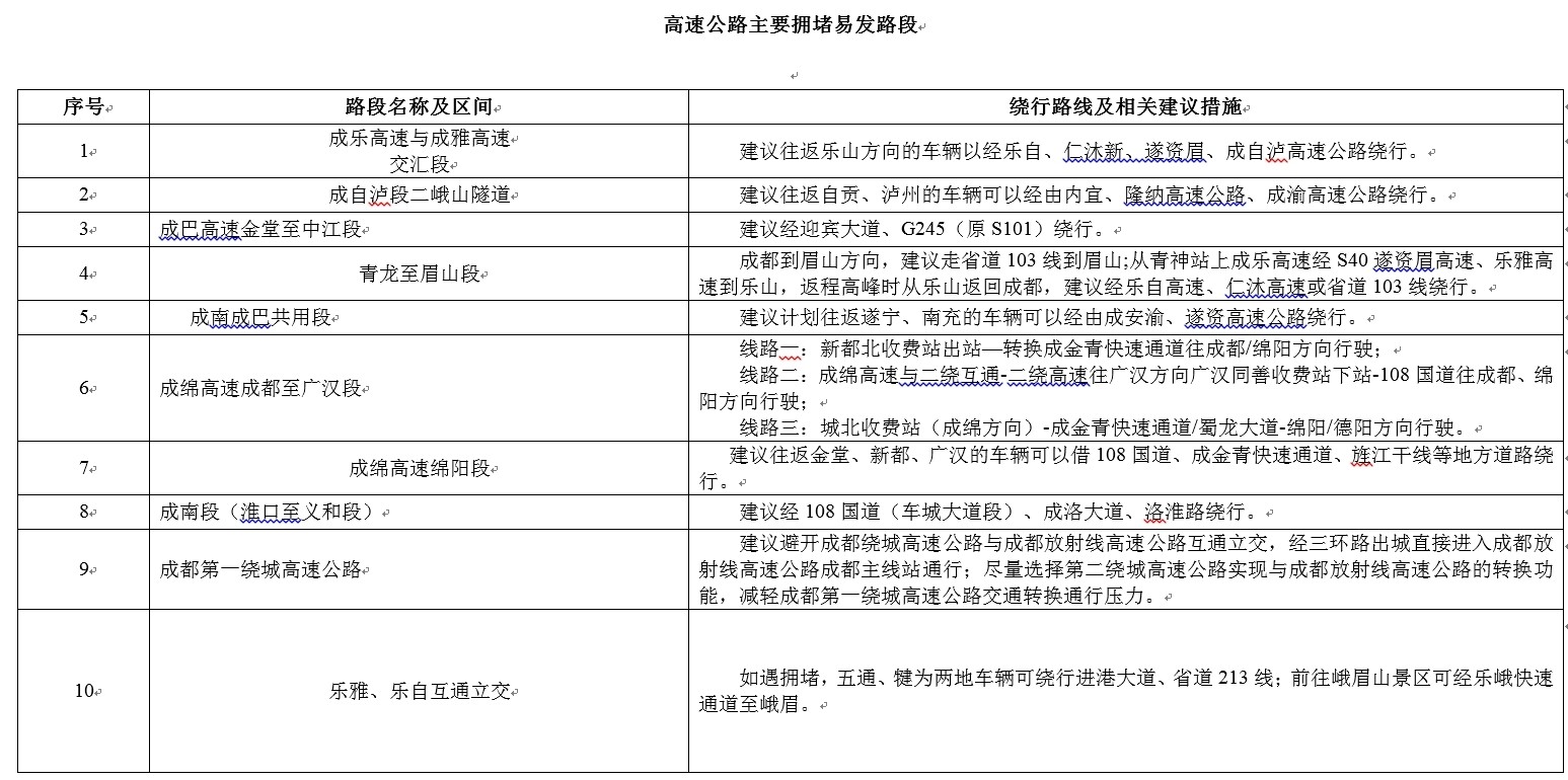 據(jù)氣象部門信息,元旦期間以多云或晴天為主,基本無惡劣天氣,適宜外出。結(jié)合我省疫情防控情況和小長假出行特點,預計元旦假期,群眾出行以省內(nèi)探親、短途出游為主,多集中在成都及其周邊地區(qū),部分通往冬季熱門景區(qū)的路段流量將較大增長。