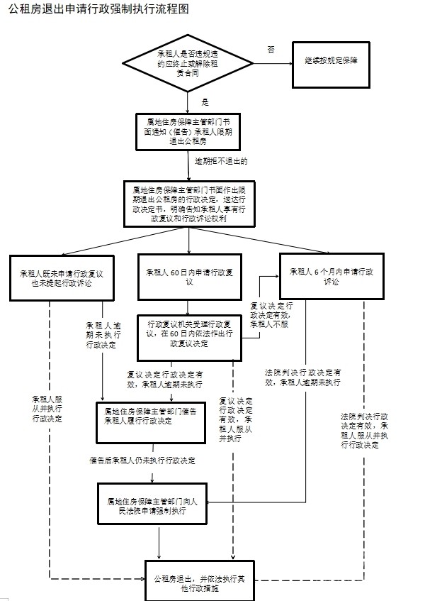 根據(jù)《指導(dǎo)手冊》,公租房退出以承租人行為和情形不同分為退回和騰退兩種方式,屬地住房保障主管部門對(duì)承租人到期拒不退出房屋及設(shè)施設(shè)備的,應(yīng)作出責(zé)令其限期騰退公租房的書面決定,逾期仍不履行的,可依法向人民法院申請(qǐng)行政強(qiáng)制執(zhí)行,“剛?cè)岵?jì)”解決公租房退房難問題。