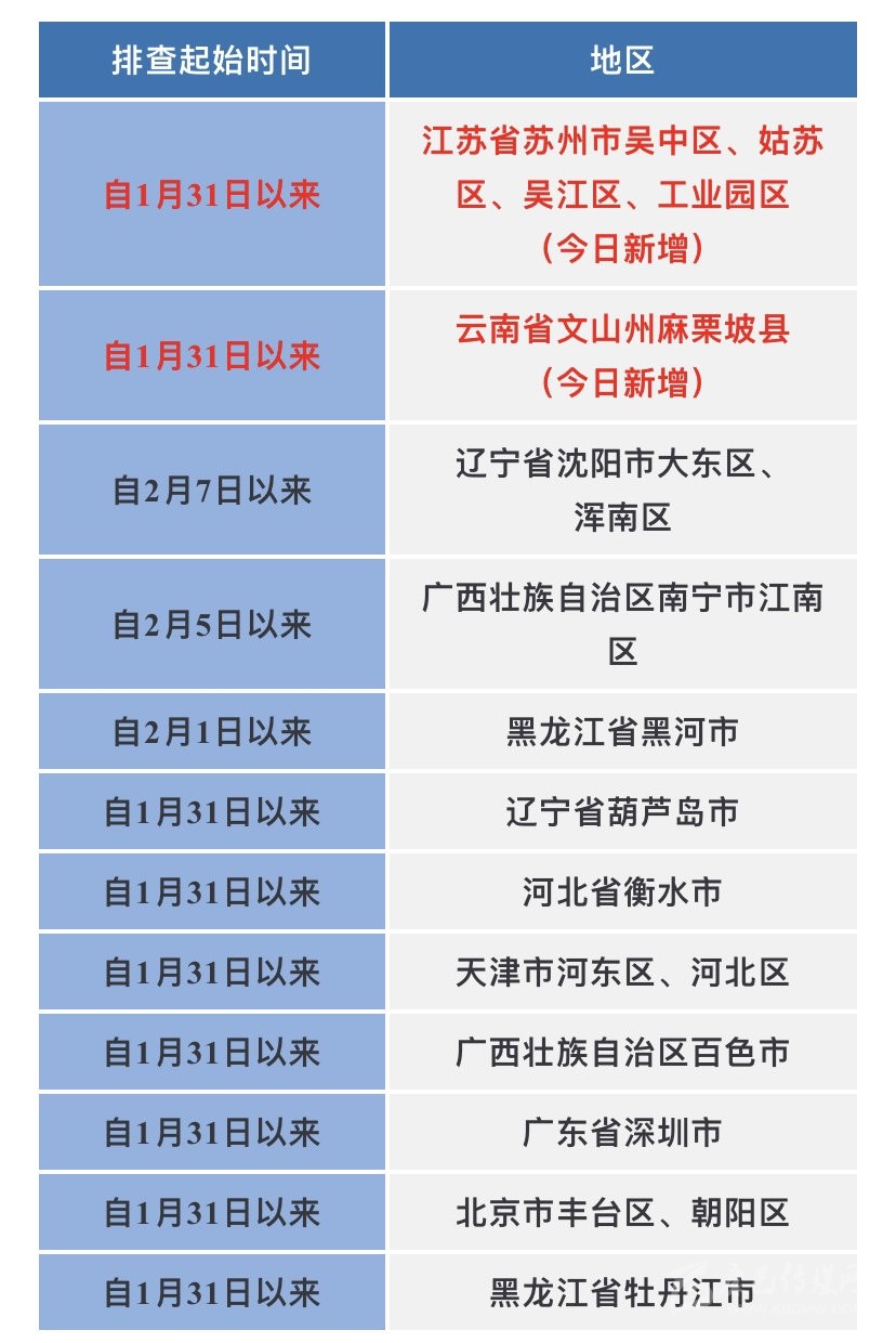 近期重點(diǎn)關(guān)注江蘇省蘇州市,遼寧省葫蘆島市,云南省文山州,廣西壯族自治區(qū)百色市疫情。不前往高、中風(fēng)險(xiǎn)地區(qū)以及發(fā)生本土疫情的地區(qū)。