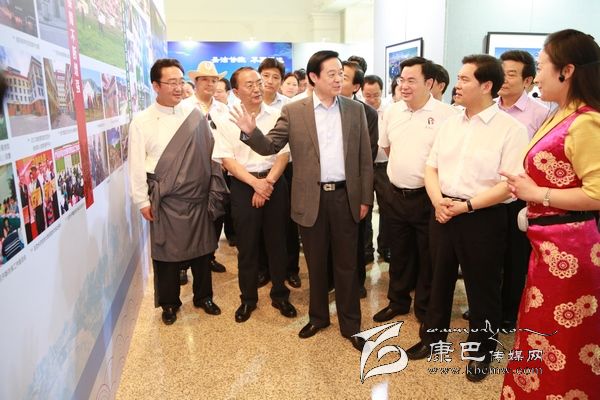 6月8日上午10時,劉奇葆、王正偉來到民族文化宮,首先走進四川甘孜藏區(qū)發(fā)展成就暨旅游圖片展現(xiàn)場。這里,展示的是甘孜藏區(qū)經(jīng)濟社會發(fā)展成就、自然風(fēng)光、歷史文化、民族風(fēng)情、田園藏寨等方面內(nèi)容的圖片。一幅幅圖片,一個個場景,劉奇葆都非常熟悉。在四川工作期間,他曾十幾次奔赴甘孜藏區(qū)考察,足跡遍布全州18個縣。劉奇葆仔細(xì)觀看展示圖片,并不時詢問交通通信、優(yōu)勢產(chǎn)業(yè)等發(fā)展情況以及民生改善的情況。劉奇葆說,甘孜山川秀美,民族風(fēng)情濃郁,是一方充滿生機和活力的土地,希望甘孜立足自身實際,大力發(fā)展農(nóng)牧業(yè)和文化旅游業(yè),大力加強生態(tài)建設(shè)和環(huán)境保護,大力改善民生,努力走出藏區(qū)科學(xué)發(fā)展、跨越發(fā)展之路。