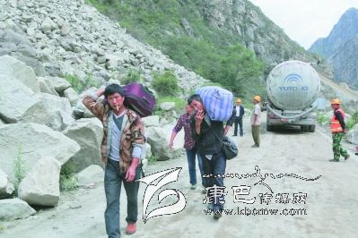 交通中斷后,過往人員只有步行通過受災(zāi)路段。
