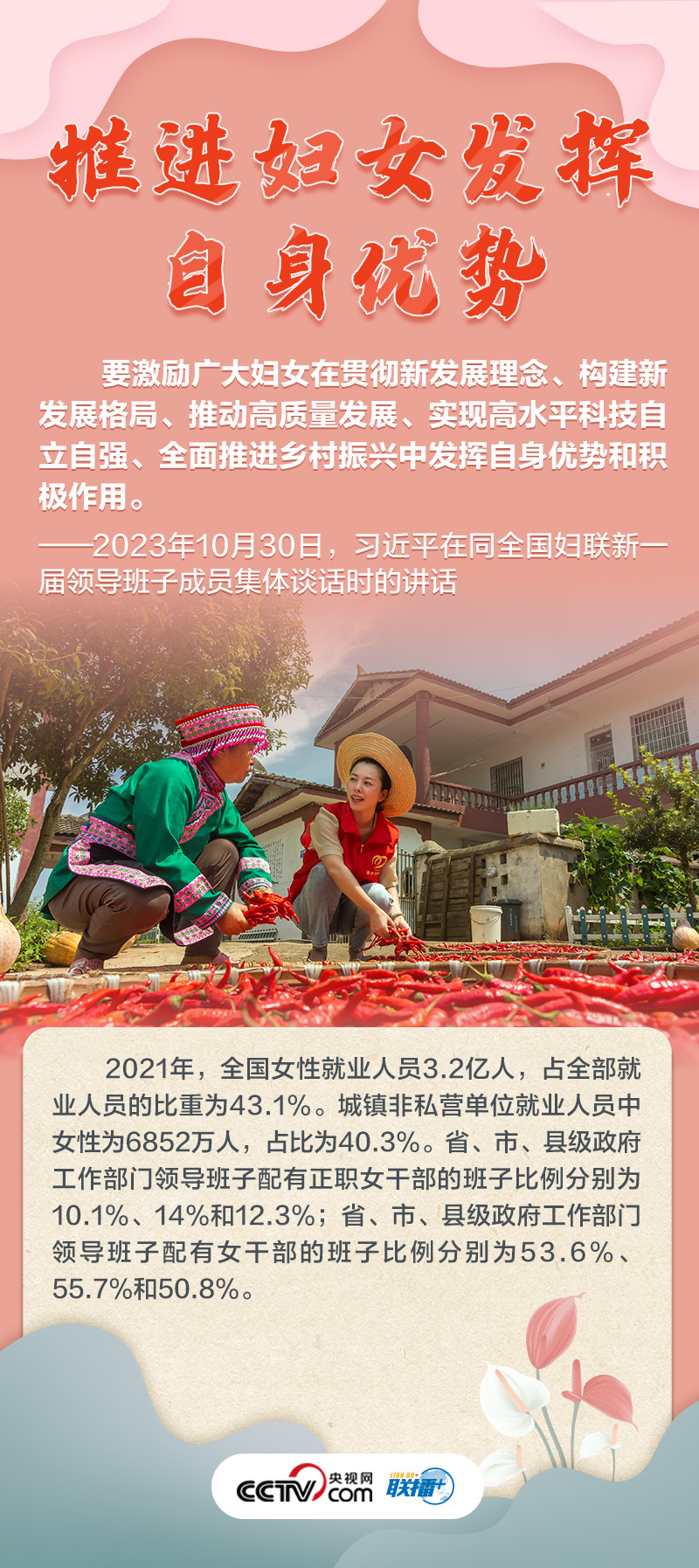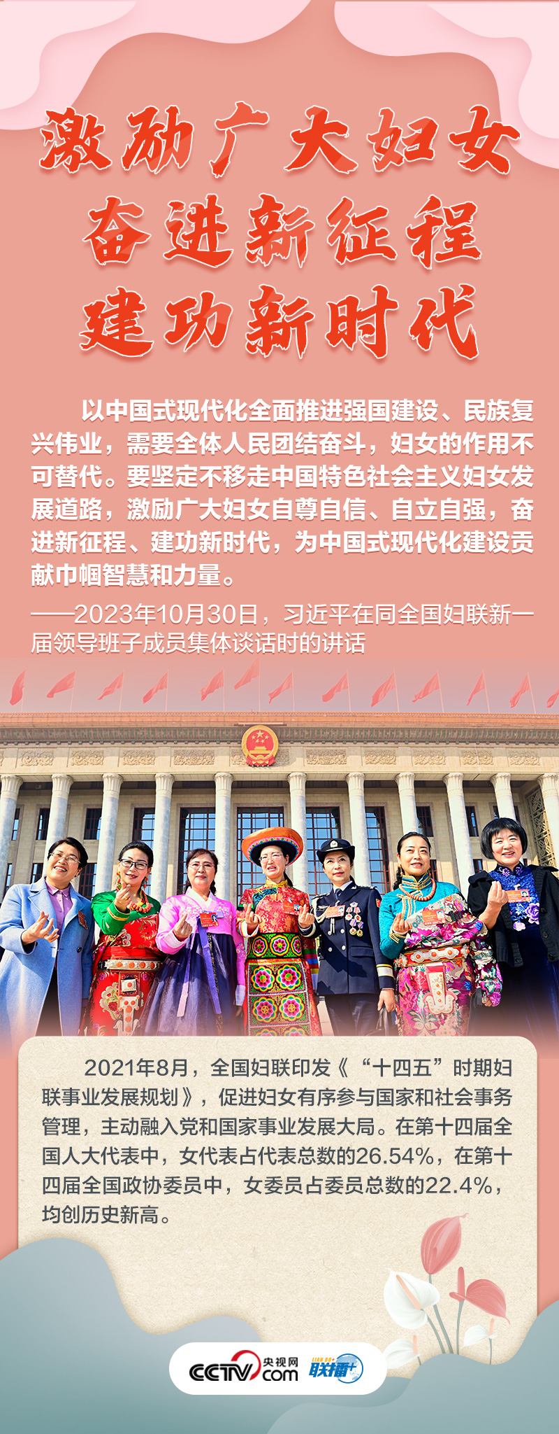 如何做好新時(shí)代新征程上婦女兒童工作,凝聚起中國式現(xiàn)代化建設(shè)的巾幗力量?央視網(wǎng)《聯(lián)播+》特推出海報(bào),與您一起了解總書記最新指示,以及近年來婦女事業(yè)和婦聯(lián)工作取得的非凡成就。