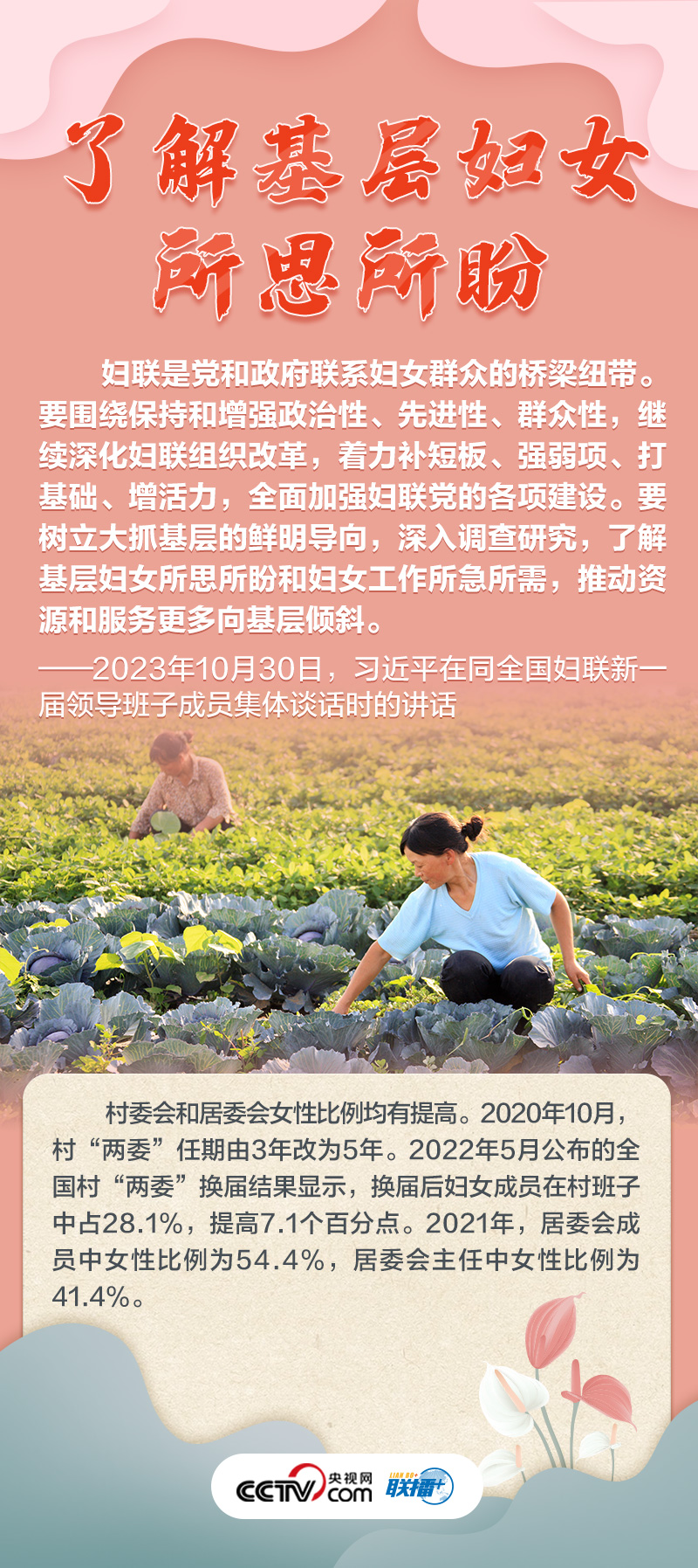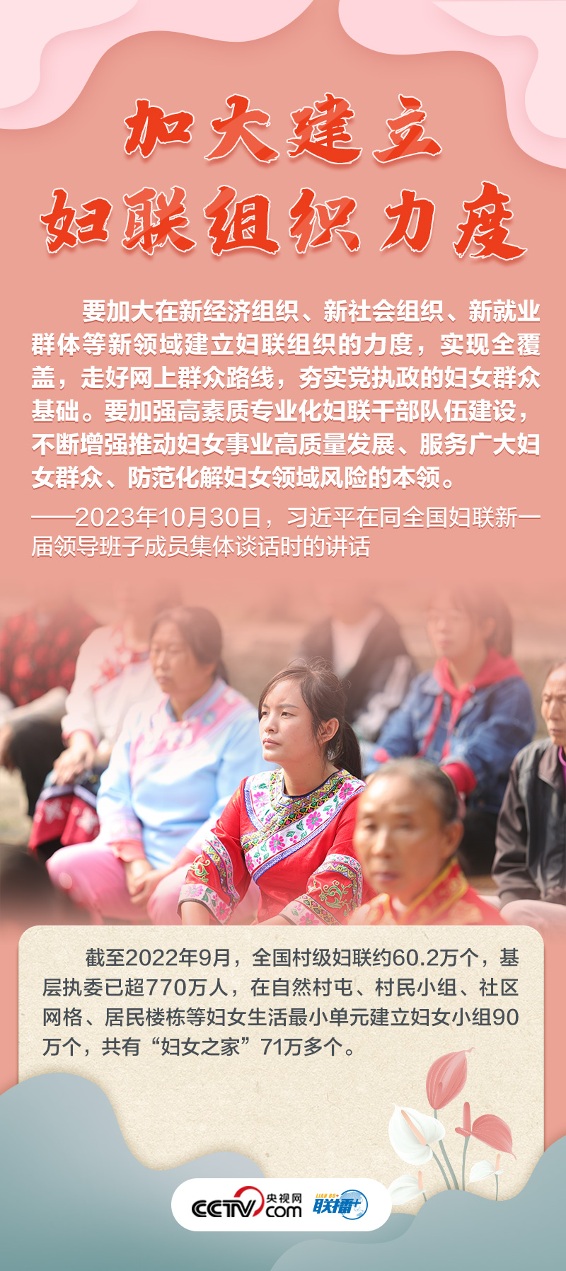 聯(lián)播+“婦聯(lián)是黨和政府聯(lián)系婦女群眾的橋梁紐帶?!?0月30日,習(xí)近平總書記同全國婦聯(lián)新一屆領(lǐng)導(dǎo)班子成員集體談話并發(fā)表重要講話,高度肯定巾幗力量,并為新形勢下婦女事業(yè)和婦聯(lián)工作發(fā)展指明方向。