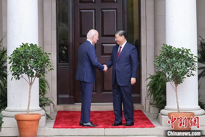 當地時間11月15日,中國國家主席習近平在美國舊金山斐洛里莊園同美國總統(tǒng)拜登舉行中美元首會晤。中新社記者 盛佳鵬 攝