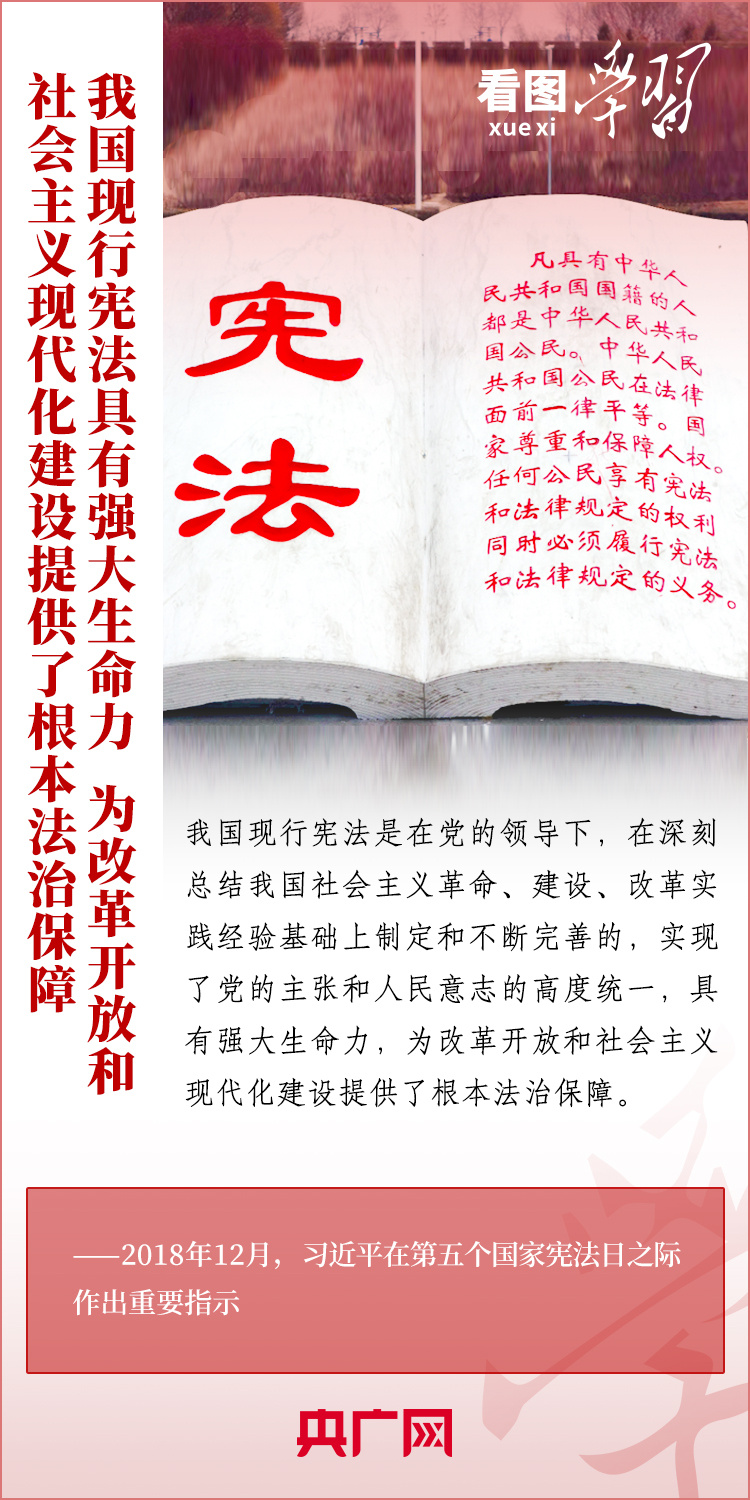 憲法是國家的根本法,是黨和人民意志的集中體現(xiàn)。尊崇憲法、學習憲法、遵守憲法、維護憲法、運用憲法,是每個公民的義務。在第十個國家憲法日(12月4日)來臨之際,《看圖學習》欄目為您梳理習近平總書記關于憲法的重要論述。一起來學習!