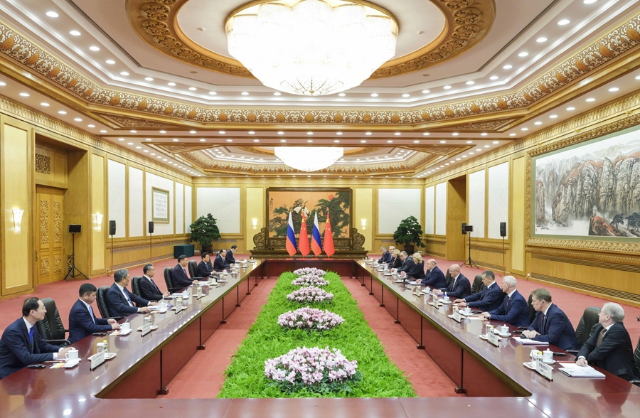 習(xí)近平強(qiáng)調(diào),中國(guó)經(jīng)濟(jì)韌性強(qiáng)、潛力大、回旋余地廣、長(zhǎng)期向好的基本面沒(méi)有改變。中國(guó)堅(jiān)定推動(dòng)高質(zhì)量發(fā)展,推進(jìn)高水平對(duì)外開放,將為包括俄羅斯在內(nèi)的各國(guó)發(fā)展提供新機(jī)遇。雙方要充分發(fā)揮政治互信、經(jīng)濟(jì)互補(bǔ)、設(shè)施互聯(lián)、民心互通優(yōu)勢(shì),不斷豐富合作內(nèi)涵,深化經(jīng)貿(mào)、能源、互聯(lián)互通等領(lǐng)域合作,共同維護(hù)產(chǎn)業(yè)鏈供應(yīng)鏈安全穩(wěn)定。雙方要辦好明后兩年中俄文化年,多設(shè)計(jì)、多開展豐富多彩的人文交流活動(dòng),夯實(shí)兩國(guó)世代友好的社會(huì)和民意基礎(chǔ)。