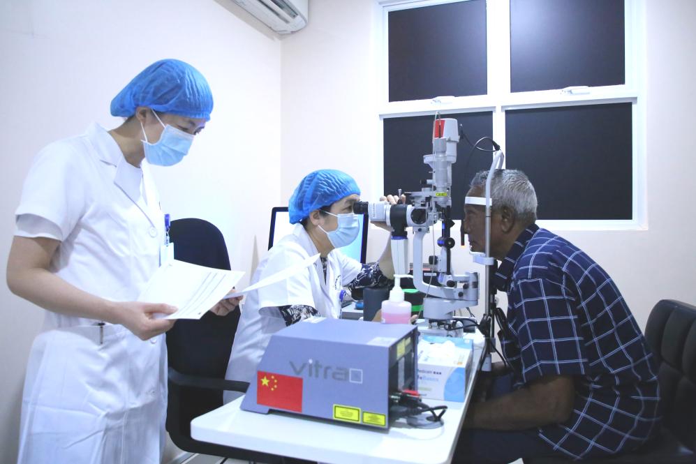 ??69歲的艾哈邁德·卡洛是中國醫(yī)療隊“光明行”活動的獲益者。兩個兒子曾帶著患有眼疾多年的老人輾轉(zhuǎn)多家醫(yī)院,均因手術(shù)難度大而無法得到有效治療。2023年,中國醫(yī)療隊醫(yī)生經(jīng)過充分評估后,給老人成功實施了手術(shù)。術(shù)后揭開眼罩時,老人家激動地說:“醫(yī)生,我可以看到你的胸牌了,謝謝你!”老人的兒子也在社交媒體發(fā)帖說:“真誠感謝中國醫(yī)生?!背酥尾?,中方還著力培訓當?shù)蒯t(yī)務人員,力爭為當?shù)卮蛟煲恢А皫Р蛔摺钡难劭茖<谊犖椤?/span>