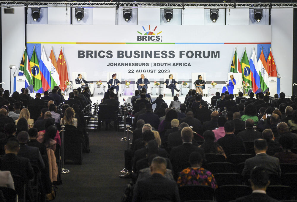 這是2023年8月22日在南非約翰內(nèi)斯堡拍攝的金磚國(guó)家工商論壇現(xiàn)場(chǎng)。新華社記者 李亞輝 攝