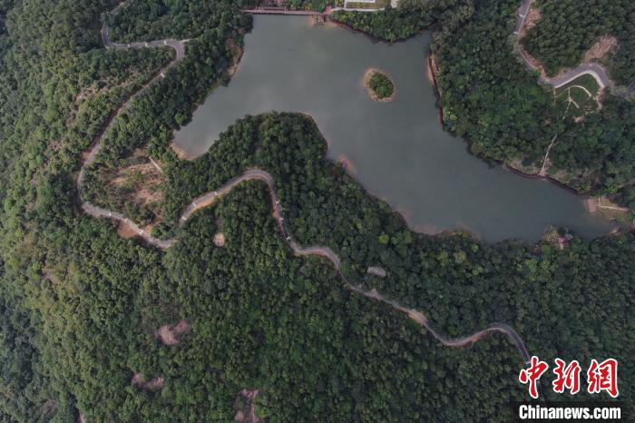 航拍鏡頭下的廣州市白江湖森林公園?!£惓t 攝