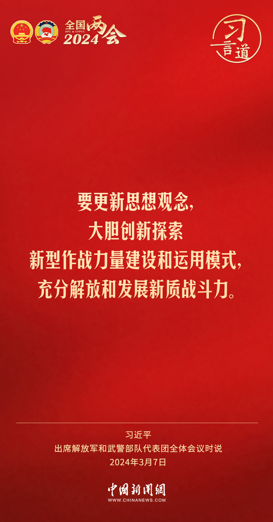中共中央總書記、國家主席、中央軍委主席習近平7日下午出席十四屆全國人大二次會議解放軍和武警部隊代表團全體會議,習近平強調(diào)——