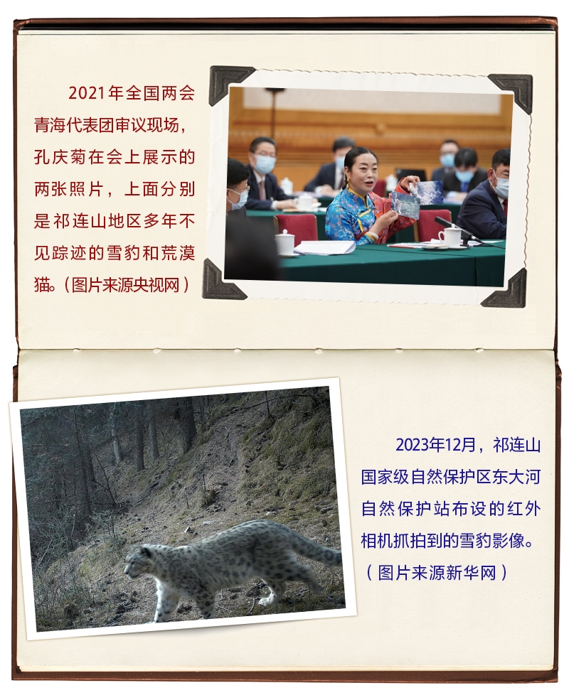 2021年3月7日,在全國兩會(huì)青海代表團(tuán)審議現(xiàn)場,孔慶菊代表拿出的兩張“大萌貓”照片,吸引了習(xí)近平的目光。