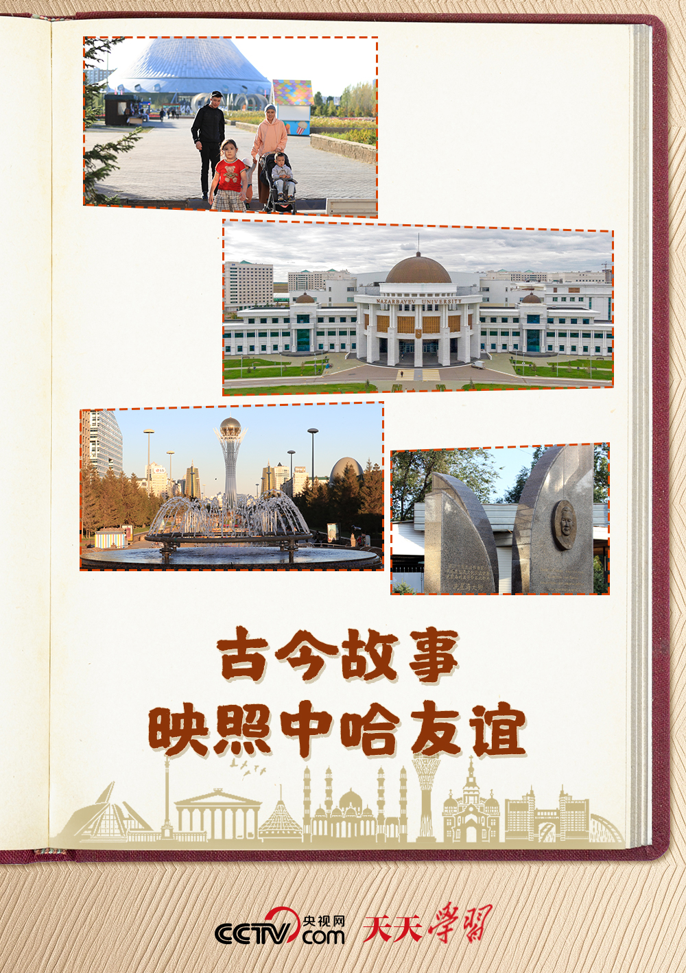 2013年9月,習(xí)近平主席在哈薩克斯坦納扎爾巴耶夫大學(xué)發(fā)表重要演講。正是在這次演講中,習(xí)主席首次提出了建設(shè)“絲綢之路經(jīng)濟(jì)帶”倡議,按下“一帶一路”啟動(dòng)鍵。其間,習(xí)主席還講述了中國(guó)著名音樂家冼星海、哈薩克斯坦小伙魯斯蘭等多個(gè)中哈友誼故事。