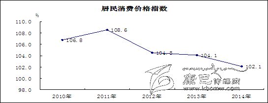 物價運行基本穩(wěn)定,漲幅高于全國全省。2014年12月CPI同比上漲1.7%,全年消費價格總水平比上年上漲2.1%,漲幅為7年來新低,比全國高0.1個百分點、比全省高0.5個百分點。