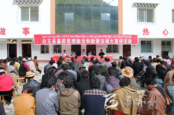 8月的白玉,烈日當(dāng)頭,秋高氣爽。31日上午,絨蓋鄉(xiāng)政府大院內(nèi),白玉縣基層思想政治和政策法規(guī)大宣講活動正在這里精彩“上演”,400多名前來“聽課”的各村群眾正津津有味地品味著縣宣講團(tuán)成員松吉尼瑪通俗易懂的藏語大宣講。從黨的十八大到十八屆三中全會精神,從糧食直補(bǔ)到低保、新農(nóng)保,從養(yǎng)老保險、殘疾人幫扶到相關(guān)法律法規(guī),宣講者深入淺出,傾聽者全神貫注。
