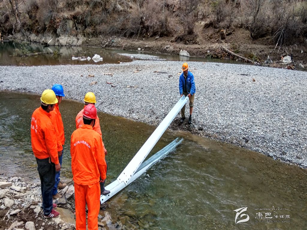 第一小組,由鄉(xiāng)城縣供電公司領(lǐng)導(dǎo)帶隊,身先士卒,肩扛繩拉地搬運電桿。