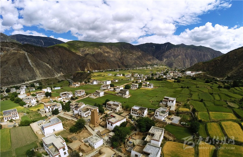 筆者來到青麥鄉(xiāng)木差村,彎彎曲曲的繞村路,沿著一棟棟獨(dú)具高原特色的藏族新居蜿蜒,塊塊農(nóng)田如翡翠般點(diǎn)綴在白色藏房之間,好一幅“村中田、田中村”的美景。