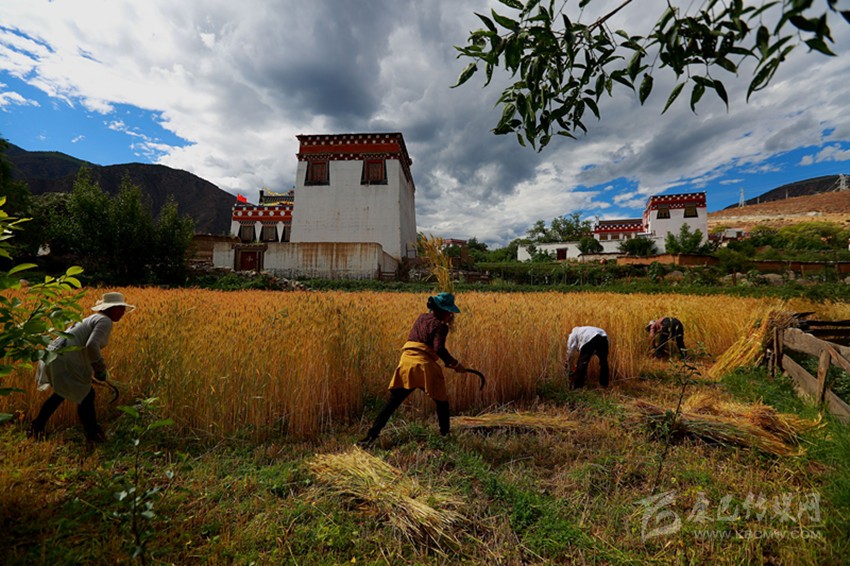 在青德鎮(zhèn)的田地里,隨處可見百姓忙碌收割的身影。熱龔村村民洛絨擁中雖然已忙得滿頭大汗,但是喜悅之情卻溢于言表,她說,由于今年風(fēng)調(diào)雨順,家里種植的青稞和小麥?zhǔn)粘杀韧暌茫眠@幾天天氣晴好抓緊搶收。筆者在地里看到,有不少收割完的農(nóng)戶正在幫助缺少勞動力的家庭,大家相互協(xié)作確保顆粒歸倉。據(jù)了解, 今年鄉(xiāng)城縣小麥和青稞種植面積達(dá)3萬余畝,長勢普遍較好。
