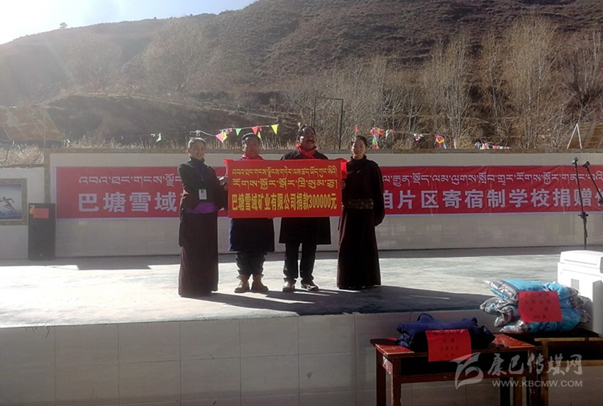 本網(wǎng)訊(記者 土登 文/圖)12月22日,巴塘縣雪域礦業(yè)有限責(zé)任公司向巴塘縣中咱片區(qū)寄宿制學(xué)校捐贈了聯(lián)想一體式電腦20臺、佳能大型雙面多功能復(fù)印機(jī)一臺、大功率15寸功放音箱一套、湖山8公斤洗衣機(jī)5臺、純羊毛毛毯330床、學(xué)生加厚純棉校服442套、教職工防寒大衣76套等價值30萬的教育教學(xué)物資??h教體局、中咱鎮(zhèn)政府負(fù)責(zé)人、中咱片區(qū)寄宿制學(xué)校全體師生員工及家長代表參加了捐贈儀式。