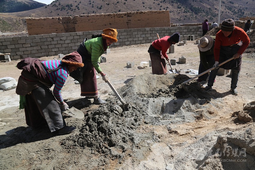 在工程實(shí)施中,全組的村民相互幫助,齊心協(xié)力建新房。“昨天大家?guī)臀野逊孔有薜冒桶瓦m適、漂漂亮亮的。我也來(lái)幫四郎曲西建房。這樣你幫我,我?guī)湍?,你幫他,要不了多久,我們這里家家戶(hù)戶(hù)都會(huì)很漂亮。”正在院子里攪拌灰漿的村民格絨多登微笑著說(shuō)。