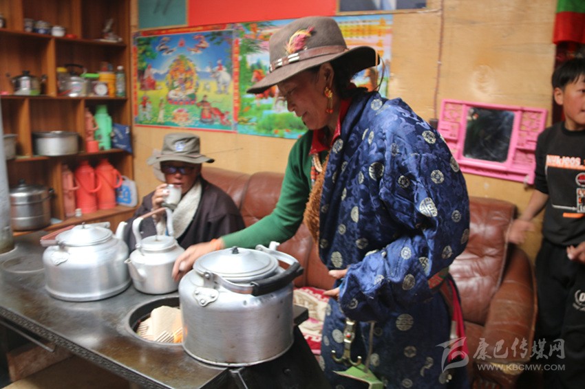 巴扎的妻子在燒茶。