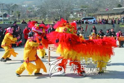 杵坭鄉(xiāng)松林村舞獅表演。