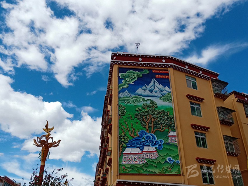 當(dāng)筆者一行走在巴塘縣城,墻體繪畫上“巴塘八景”躍然于上,“巴山積雪”“柳林較射”“桃園賞花”“板橋垂釣”“古桑抱石”“溫泉沐浴”“暖石回陽(yáng)”“老柳夾槐”色彩豐富、構(gòu)思精巧,平淡無(wú)奇的墻面因?yàn)橐环r活的繪畫變得生活,一面墻一幅畫一個(gè)故事。街頭巷尾,十字路口的“大鵬蓮花燈”“九眼天珠燈”“走馬燈”高高懸掛展示巴塘風(fēng)貌。以“茶馬古道”為主題打造的“最美古鎮(zhèn)”,悠悠古韻講巴塘故事,古色古香顯巴塘韻味……
