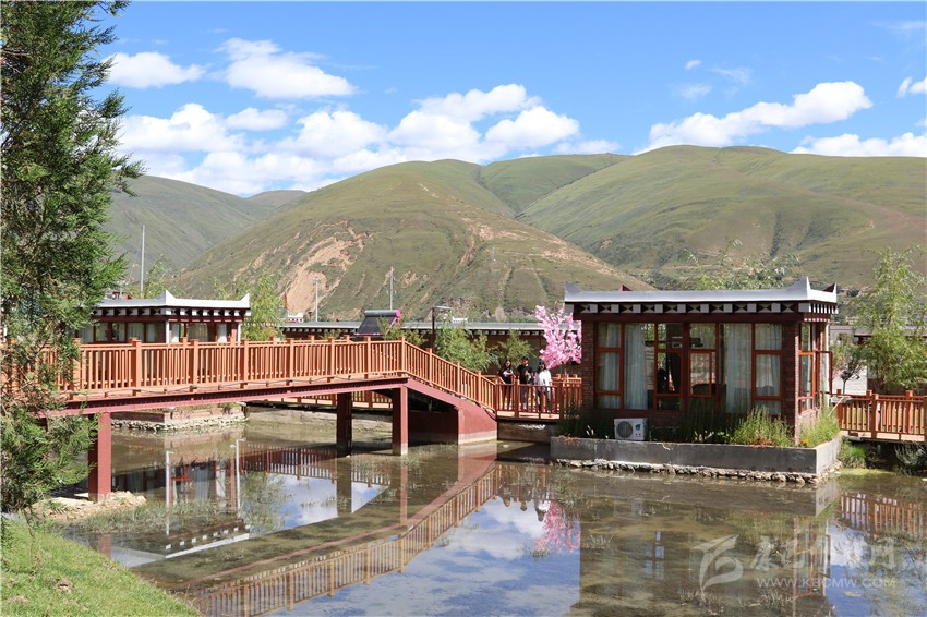 走進(jìn)山莊,一排排仿道孚民居外觀的房子整齊排列掩映在柳樹間,四面落地玻璃窗的設(shè)計(jì)讓陽光溫暖整個(gè)房間,潺潺的小溪縈繞其間,不遠(yuǎn)處蒼措嘎布海子的蘆葦叢在微風(fēng)中輕輕擺動(dòng),幾只野鴨子在水上嬉戲,特色民居增加了民族韻味,漫步木制棧道,眼前呈現(xiàn)出美麗鄉(xiāng)村的畫卷。