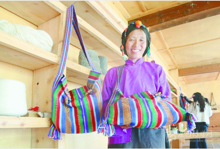 圖為貧困戶展示親手制作的手工藝品。