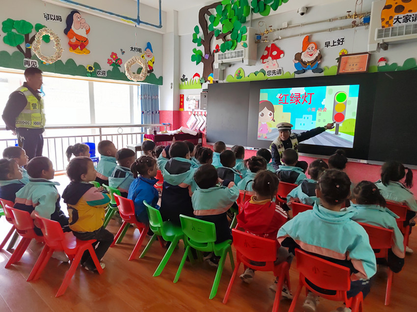 本網(wǎng)訊 日前,理塘縣高城鎮(zhèn)幼兒園開展了交通安全進課堂活動,引導孩子們從小養(yǎng)成遵守交通規(guī)則的好習慣。圖為交警為幼兒講解交通安全知識。降央曲西 葉強平 攝影報道