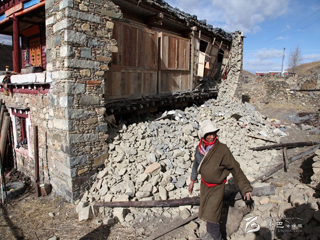 該村不少舊式藏居已經(jīng)徹底倒塌,瓦礫遍地。正在幫助村民搭建帳篷的中古村包村干部劉怡說(shuō),全村共189戶村民,125戶有房,受災(zāi)110棟房,其中五組受災(zāi)最嚴(yán)重,31戶房屋倒塌。這個(gè)村當(dāng)年沒(méi)有被納入牧民定居建設(shè)。