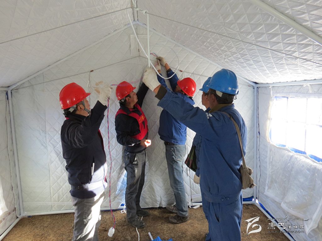 奪拉二村有4個變壓器臺區(qū),其中2個臺區(qū)為人員較多的木雅祖慶學校,地震使學校住宿樓變?yōu)槲7浚=?000名學生轉(zhuǎn)移至學校空地上的安置點。為了讓安置點內(nèi)的受災師生和應急指揮中心盡快用上電,黨員突擊搶險小分隊不僅要在安置點迅速安裝應急照明設施,同時還要從圍墻和學校食堂的樓頂上重新布放近3段2公里長的臨時電源線。學校圍墻因地震而搖搖欲墜,稍微用點力,墻、磚塊或水泥就會掉下來,面臨這一難題,公司黨總支沉著應對,迅速組織塔公供電所與新都橋供電所的黨員干部趕往震中,同時安排其余供電所的黨員干部迅速增援。先期到達的救援人員在余震不斷發(fā)生的情況下,對受損供電設備及線路進行了緊急處理;在后期人員趕到后,公司黨總支迅速研究制定工作方案,科學分工:第一組黨員突擊搶險隊負責隱患排查,第二組黨員突擊搶險隊負責電線布放,第三組黨員突擊搶險隊負責救災帳篷的照明安裝。在三個小組隊員的共同努力下,用近三個小時的時間就解決了應急指揮中心、醫(yī)療隊和臨時安置點的照明安裝這一難題。