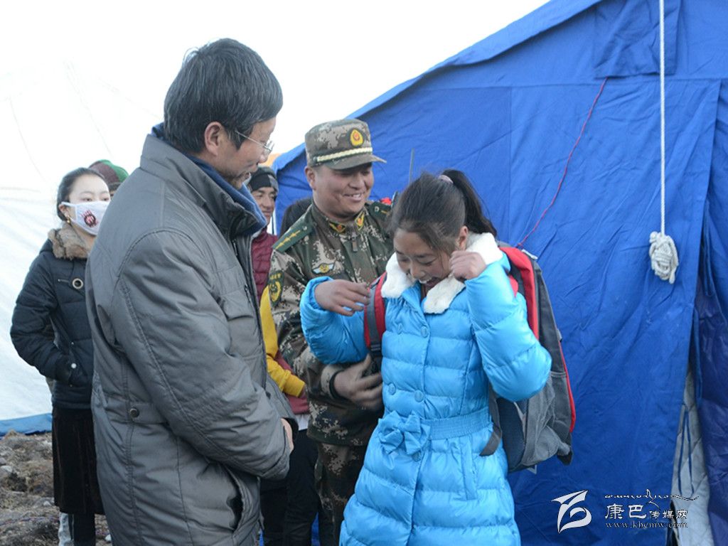 由于受此次地震影響,西康福利學(xué)校的孩子們已經(jīng)放假回到親戚家寄宿。塔公救災(zāi)一線的官兵們利用休息時(shí)間,向胡忠仔細(xì)打聽5個(gè)孤兒的身高和臨時(shí)住址,大家主動集資專門采購了羽絨服、書包、文具和米面油等物資。10日下午,官兵們在西康福利學(xué)校老師的陪同下,驅(qū)車百余公里,先后深入到塔公鎮(zhèn)江巴村、多拉一村、各日馬村、下馬龍村和朋布西鄉(xiāng)奪讓村,跨河溝、爬山坡,鉆帳篷、進(jìn)板房,提著新買的衣服、書包,扛著米面,逐一走訪這些孤兒所寄宿的家,勉勵(lì)他們在困境中自強(qiáng)不息,努力學(xué)習(xí),為自己的夢想而頑強(qiáng)拼搏,并與孤兒所寄宿的親戚細(xì)心溝通交流,囑咐他們照顧好可憐的孩子,有困難找武警,大家齊心協(xié)力為孤兒創(chuàng)造一個(gè)溫暖的家,為孤兒的成長成才盡最大的努力。