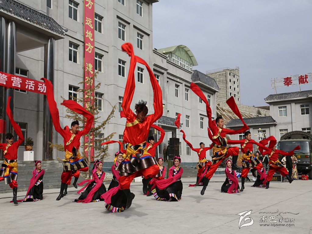 演出活動(dòng)在充滿(mǎn)藏族民族風(fēng)情的男女群舞《吉祥頌》中拉開(kāi)帷幕,節(jié)目一開(kāi)始,演員們激昂的熱情、優(yōu)美的舞姿給觀眾們帶來(lái)了美的享受,女子獨(dú)唱《納西情歌》《套馬桿》、男生獨(dú)唱《吉祥謠》、女子群舞《情灑康巴》、男子群舞《青春踢踏》、女子快板《甘孜兒女心向黨》等精彩節(jié)目相繼登場(chǎng),將演出活動(dòng)推向一個(gè)又一個(gè)高潮。特別是由支隊(duì)官兵表演的民族舞蹈《野人狂歡》、表演唱《當(dāng)兵就是帥》等精彩節(jié)目,贏得了觀眾們的陣陣喝彩。雖然天氣異常寒冷,天空還不時(shí)飄起了雪花,但演員們卻一直以飽滿(mǎn)的激情、嫻熟的技藝,為官兵們獻(xiàn)上了一個(gè)又一個(gè)精彩的節(jié)目。整場(chǎng)演出抒發(fā)了駐地群眾對(duì)人民子弟兵的深厚情誼和感激之情,表達(dá)了他們對(duì)人民子弟兵扎根高原、無(wú)私奉獻(xiàn)的欽佩之情,他們用自己的精彩表演,向人民子弟兵致以最親切的問(wèn)候和最誠(chéng)摯的敬意。