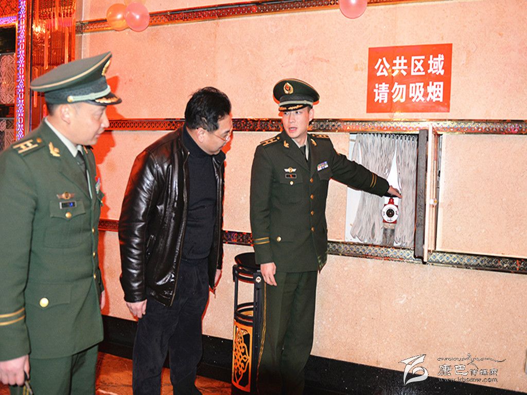 公安消防干警正在檢查消防設施。