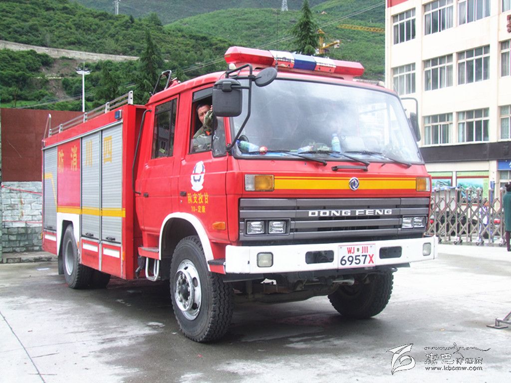 消防車在考場(chǎng)外待命。