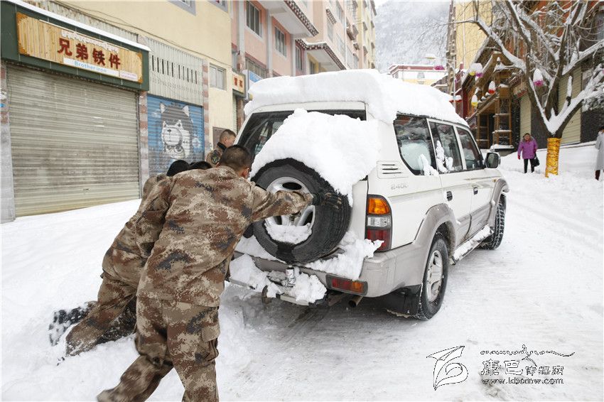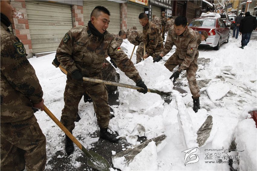 (直擊康定大雪)甘孜軍分區(qū):百余官兵助民除雪