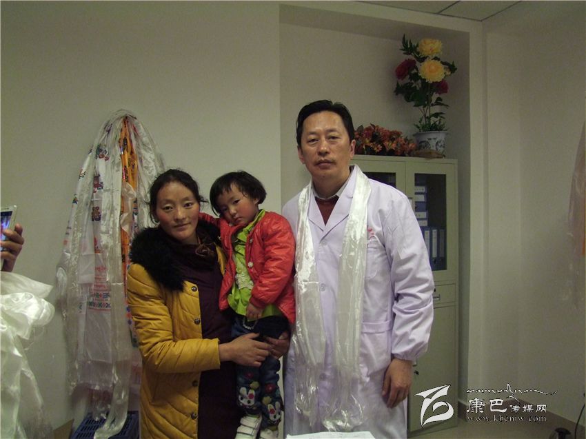 楊康明正在接受記者采訪時(shí),白玉縣安孜鄉(xiāng)麻絨村村民亞馬剛辦完出院手續(xù),帶著女兒、妻子,將一條黃色的哈達(dá)掛在楊康明的脖子上,夫妻倆不約而同地向楊康明說(shuō)著感激的話語(yǔ),希望記者多宣傳醫(yī)護(hù)人員心系患者的好事。