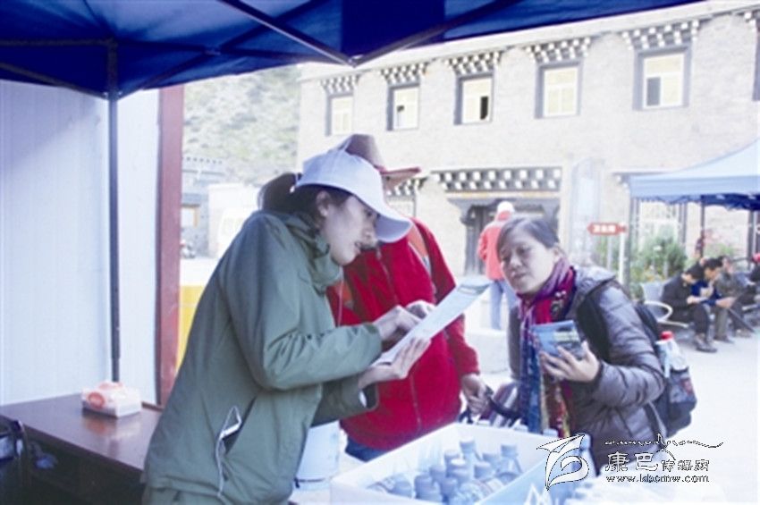 稻城亞丁景區(qū)工作人員為游客提供溫馨服務。