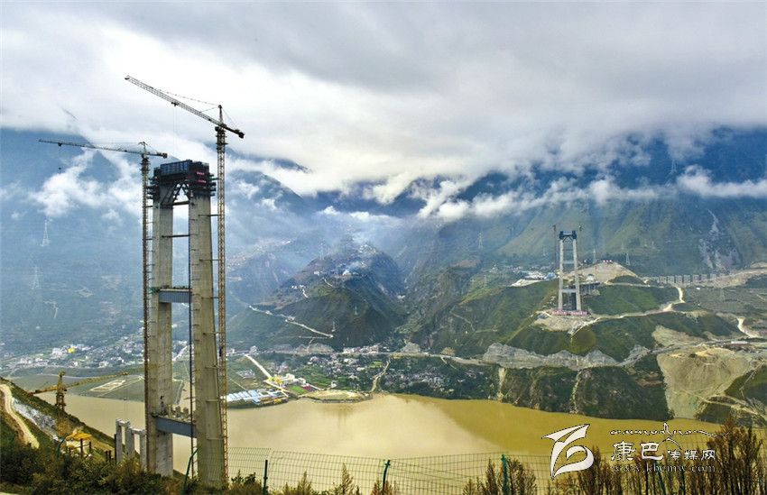 從高處俯瞰,兩座188米高的主墩十分壯觀,在康定一側(cè)的主墩下,汽車長龍如同螞蟻一樣大小,沿著318國道向康定進(jìn)發(fā)。
