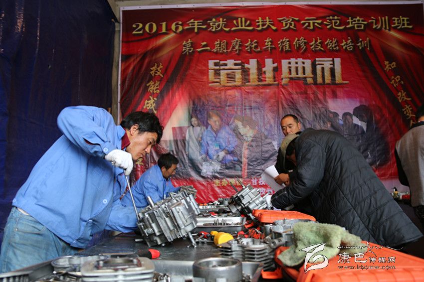 據(jù)了解,為深入貫徹落實(shí)州委、州政府精準(zhǔn)扶貧工作精神,高標(biāo)準(zhǔn)、高質(zhì)量完成就業(yè)扶貧技能培訓(xùn)和就業(yè)促進(jìn)專項(xiàng)計(jì)劃,州人力資源和社會保障局抓緊安排部署,開展了系列就業(yè)扶貧技能培訓(xùn)示范活動。2016年10月10日至29日,第二期就業(yè)扶貧技能培訓(xùn)示范班——摩托車維修技能培訓(xùn)在康定開展,來自16個(gè)縣的45名建檔立卡貧困戶勞動力參加培訓(xùn),為解決學(xué)員們的后顧之憂,學(xué)員們的往返交通費(fèi)、住宿費(fèi)、伙食費(fèi)、實(shí)訓(xùn)工裝費(fèi)、資料費(fèi)全免。今天是考核和技能比賽時(shí)間,學(xué)員們正在輪流進(jìn)行發(fā)動機(jī)的拆裝,考核合格的學(xué)員將獲得初級職業(yè)資格證書。