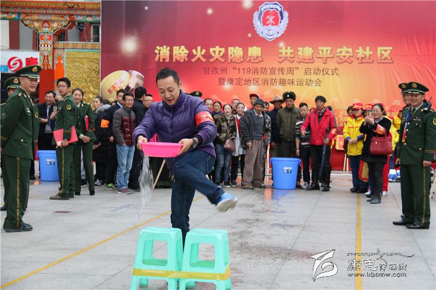 本網(wǎng)訊(記者 宋志勇 文/圖)“參加隊員要注意比賽規(guī)則,這樣才公平、公正。”“參賽隊員注意了,比賽開始必須先回答三道題,答對才能起跑。”這是11月6日,以“消除火災隱患、共建平安社區(qū)”為主題,由州人民政府消防安全委員會主辦,州教育局、州司法局、州安全生產(chǎn)監(jiān)督管理局、州公安消防支隊、康定市人民政府消防安全委員會承辦的我州“119消防宣傳周”啟動儀式暨康定地區(qū)消防趣味運動會中,裁判正在給參賽各隊這樣講解到。