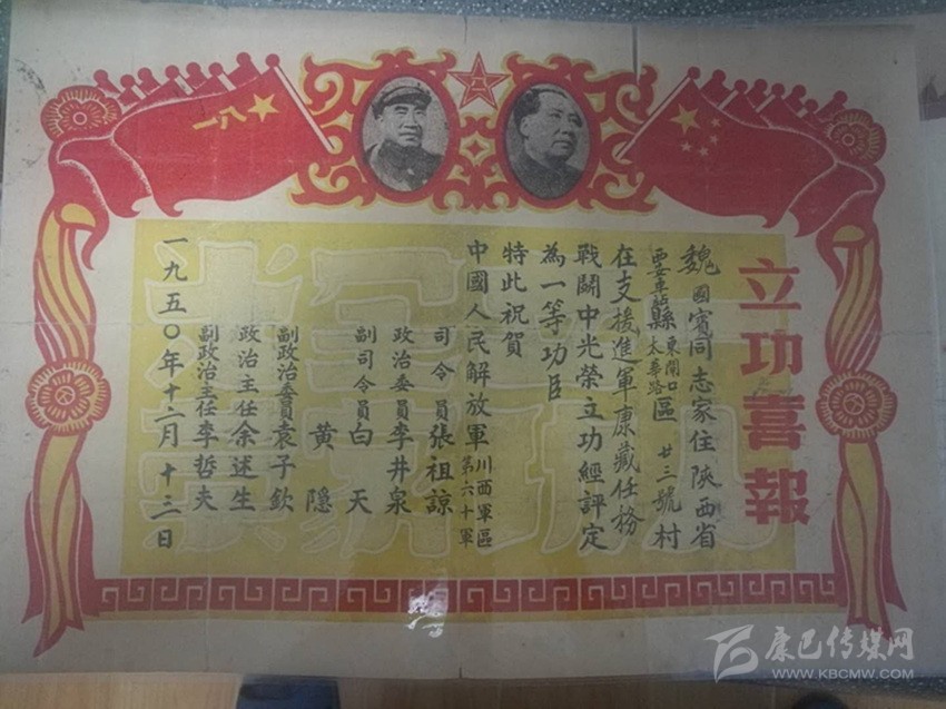 魏國賓榮立一等功喜報(bào)。