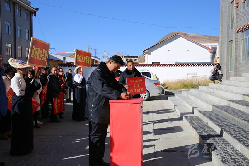 本網(wǎng)訊 “扶貧濟(jì)困、樂善好施、崇德向善,是中華民族的傳統(tǒng)美德,是構(gòu)建和諧社會(huì)、建設(shè)‘生態(tài)文明和諧’新石渠的要求。我們呼吁全縣各機(jī)關(guān)、企事業(yè)單位、社會(huì)團(tuán)體及社會(huì)各界人士主動(dòng)伸出援手,積極參與此次活動(dòng),奉獻(xiàn)一份愛心,貢獻(xiàn)一份力量……”10月17日上午10點(diǎn),隨著縣委副書記扎西曲珍宣讀倡議書的聲音,由石渠縣脫貧攻堅(jiān)辦、縣工青婦、縣紅十字協(xié)會(huì)聯(lián)合舉辦的主題捐贈(zèng)活動(dòng)在縣委政府辦公區(qū)正式拉開帷幕,社會(huì)各界愛心人士排成長(zhǎng)隊(duì),依次將承載滿滿愛心的善款鄭重放入募捐箱內(nèi)。